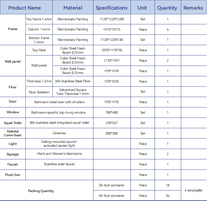 2. 20ft container for 18 single restroom units 40ft container for 36 single restroom units
